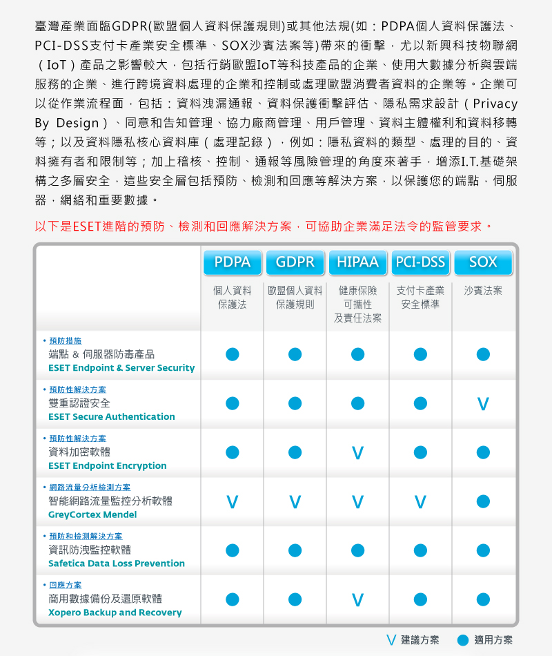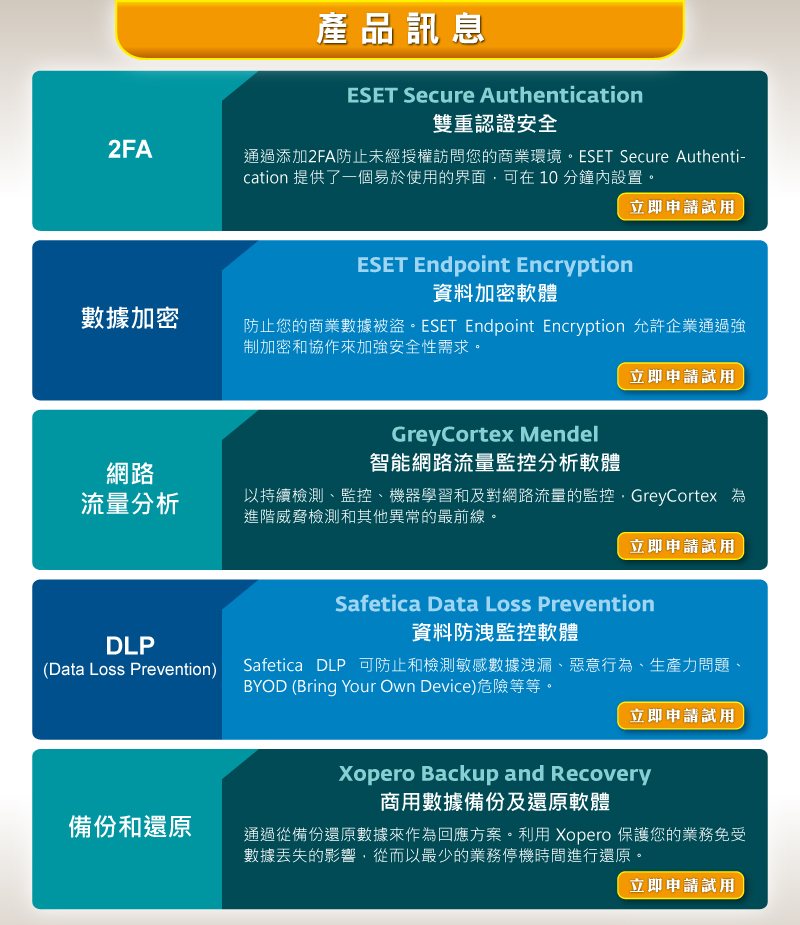 由於新版本增加了新的資安防護技術,可以得到ESET Remote Administrator支援,大大提升電子郵件的安全體驗,包括防禦惡意軟體,垃圾郵件過濾和進行徹底的電子郵件掃描等,可以協助企業抵禦最新或未知的資安威脅。建議您更新所使用之ESET資安產品至最新版本,來保護貴公司的重要資料。