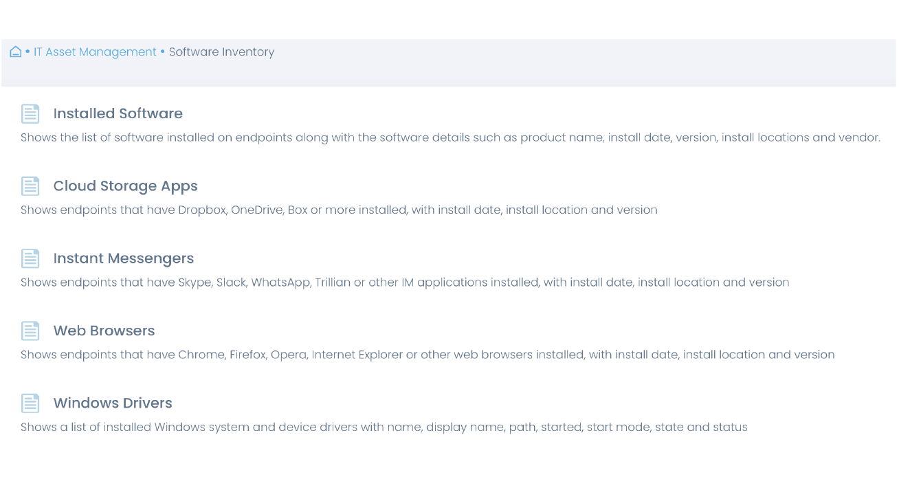 Get a real-time inventory of your software to promptly identify and deploy missing applications and patches. Make informed decisions about automating software management and deployment activities, and prove compliance.